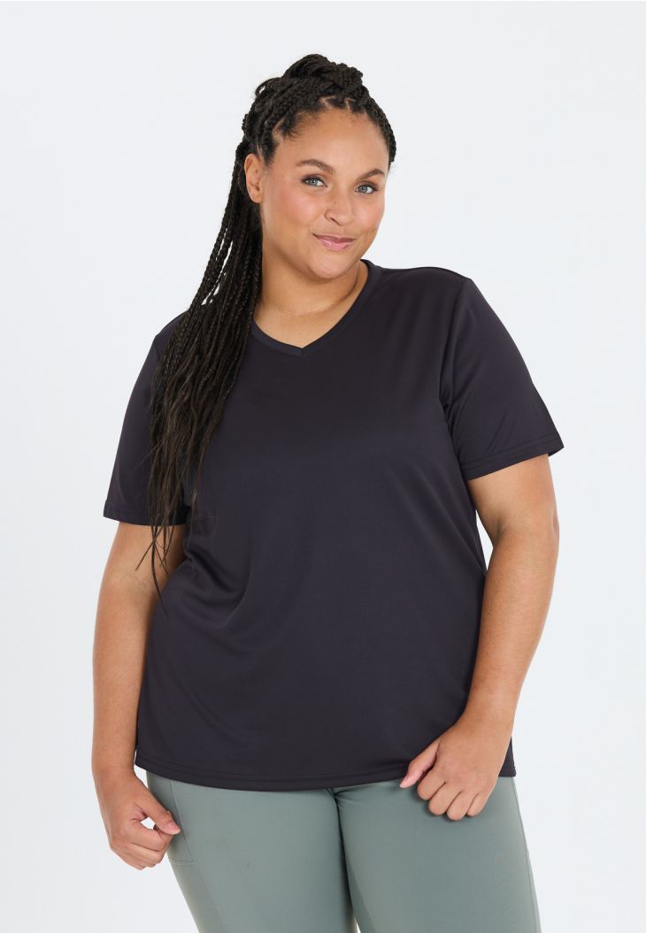 "Annabelle" fra Q Sportswear er det perfekte T-shirt til aktive kvinder, der går op i kvalitet og funktionalitet. Det er fremstillet af 100 % polyester og tilbyder fremragende komfort og bevægelsesfrihed, hvilket gør det ideelt til alle sportsaktiviteter. Med en V-udskæring, en let pasform og et design, der er specielt tilpasset kvinder i plusstørrelser, garanterer dette T-shirt både stil og funktion. "Annabelle" er det perfekte valg for kvinder, der ikke vil gå på kompromis med komfort og ydeevne i deres trænings- og fritidstøj.
