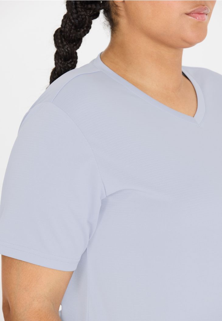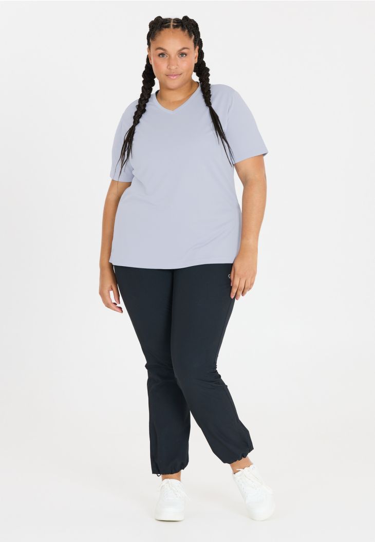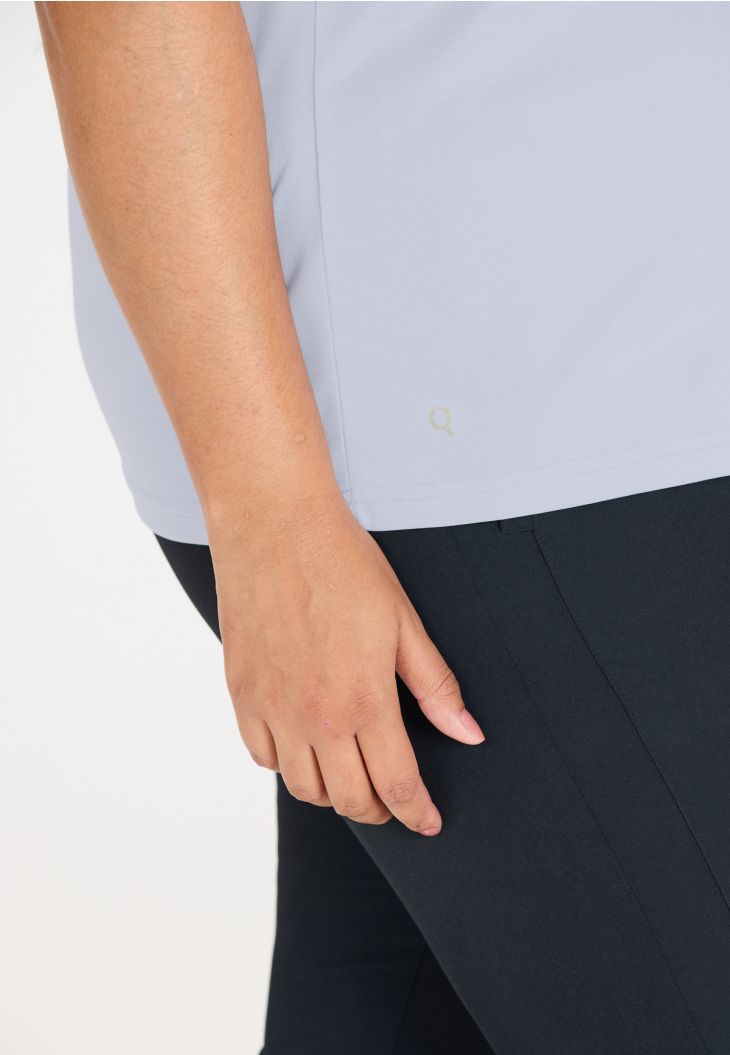 "Annabelle" fra Q Sportswear er det perfekte T-shirt til aktive kvinder, der går op i kvalitet og funktionalitet. Det er fremstillet af 100 % polyester og tilbyder fremragende komfort og bevægelsesfrihed, hvilket gør det ideelt til alle sportsaktiviteter. Med en V-udskæring, en let pasform og et design, der er specielt tilpasset kvinder i plusstørrelser, garanterer dette T-shirt både stil og funktion. "Annabelle" er det perfekte valg for kvinder, der ikke vil gå på kompromis med komfort og ydeevne i deres trænings- og fritidstøj.