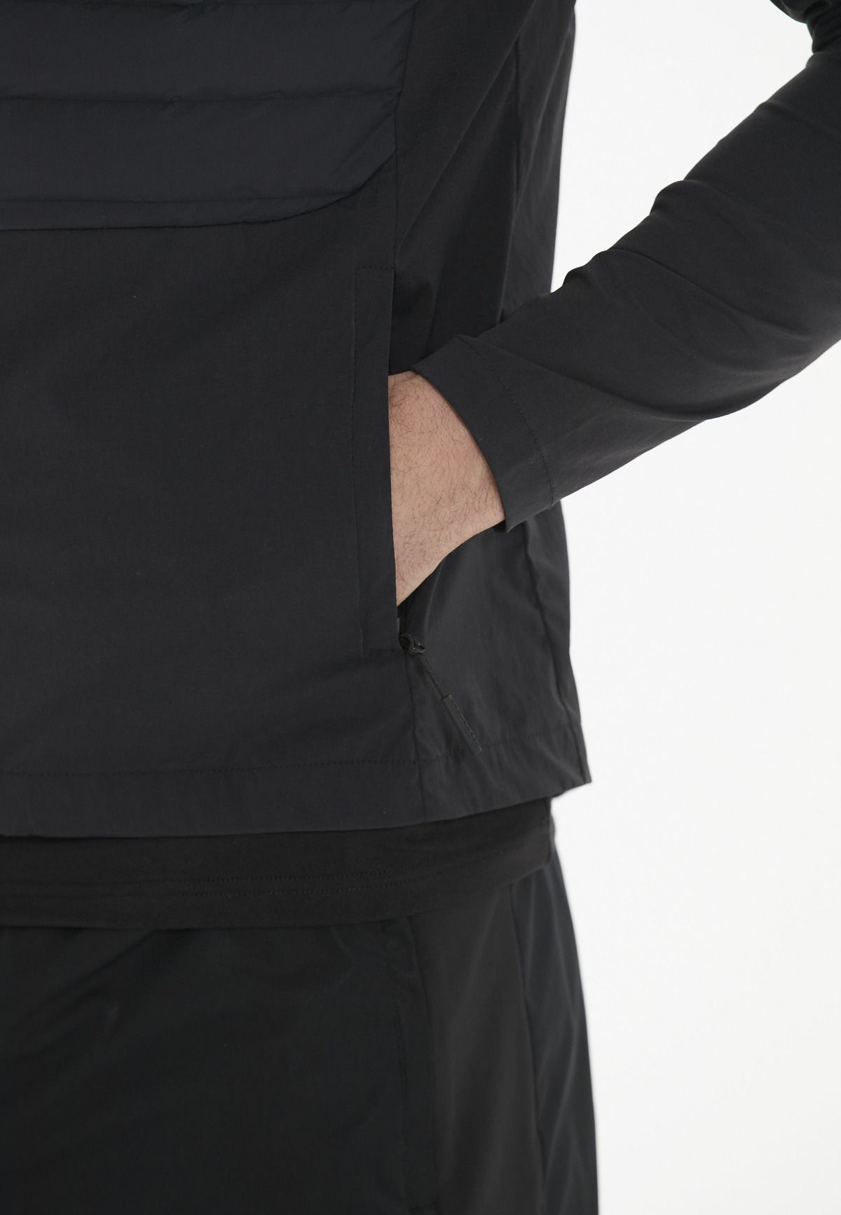 Hybridjakken "Benst" til mænd giver behagelig varme og masser af komfort, når du er aktiv i den friske luft. Den er fyldt med højkvalitets, åndbar Primaloft-vattering og beskytter dig mod den kølige brise takket være sin vindafvisende kvalitet. Den lukkes nemt med YKK-lynlås med hagebeskyttelse.