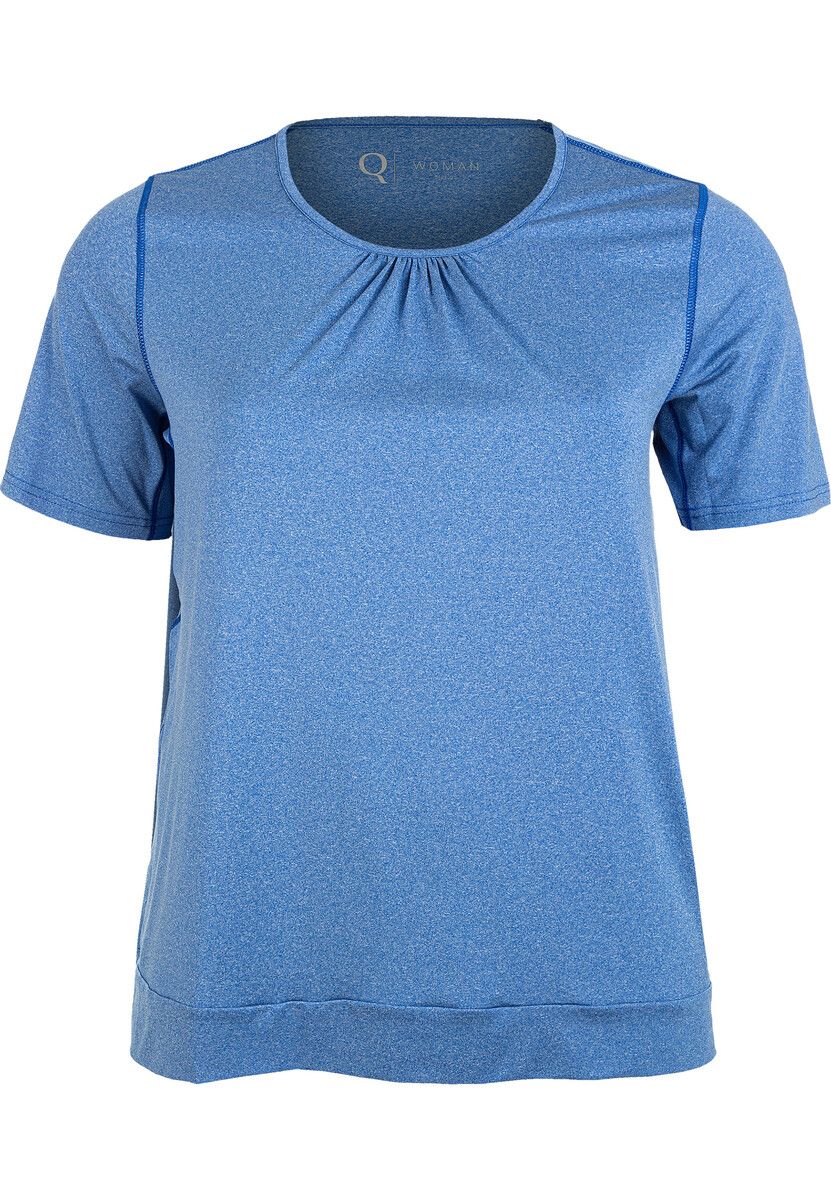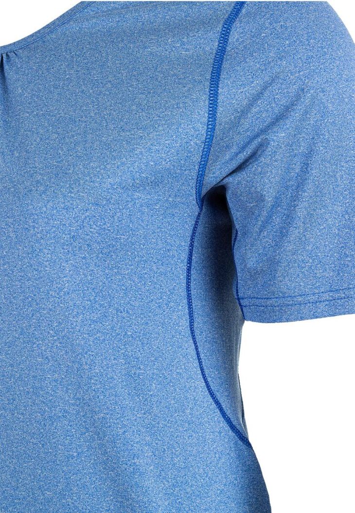 Den super afslappede og funktionelle t-shirt i høj kvalitet "Bree Melange" fra Q Sportswear glæder sporty og modebevidste kvinder! Det åndbare materiale med Quick Dry teknologi leder fugt væk fra huden, så den fordamper hurtigere. Det sikrer en behagelig, tør følelse. Det perfekt koordinerede afslappede damesnit med rund hals sikrer en flatterende og feminin pasform. Det fugttransporterende og åndbare materiale tørrer hurtigt og sikrer derfor et optimalt feel-good klima. Uanset om den står på yoga, løb eller fitness eller leder efter afslappede skjorter til arbejde og fritid. "Bree Melange" t-shirt fra Q Sportswear sikrer altid et cool udseende!