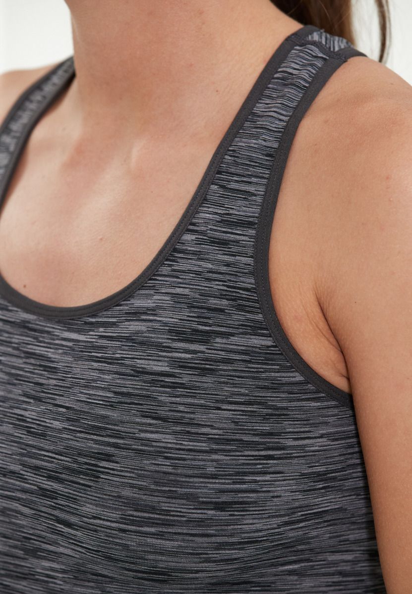 Crina er en fremragende top fra mærket Endurance. Det er et ideelt produkt til fitness eller indendørs sport og er velegnet til kvinder. Dens udseende er præget af et smart meleret mønster. Toppen er sømløs, åndbar og fugtregulerende.