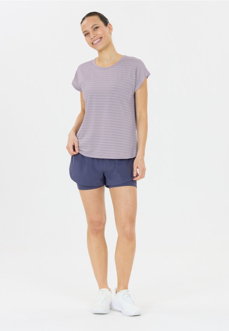 Det superlette og luftige funktionsshirt LIMKO til kvinder fra Endurance er ideelt til en svedig træning. Det er let gennemsigtigt og kan f.eks. kombineres med en smart sports-BH. Desuden scorer det med Quick Dry-teknologien, hvor fugt transporteres fra indersiden til ydersiden. Den hurtige fordampning sikrer en tør og behagelig fornemmelse. Det afslappede og komfortable snit fremhæver den kvindelige figur. Det lille logo-print på venstre skulder reflekterer og giver lidt mere sikkerhed om natten eller i skumringen. Der er også et lille synligt og reflekterende bånd på nakken. Klare linjer, meget enkel og minimalistisk, men samtidig hip – Endurance-kollektionen kan nemt og hurtigt kombineres til et trendy sportsoutfit!