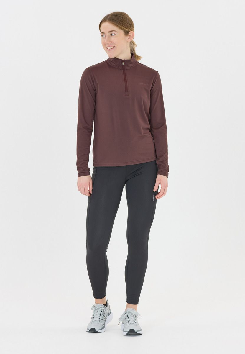 Aktive timer bliver en succes med "Aileen" midlayer til kvinder! Fremstillet af 4-vejs stretch med 90 % polyester og 10 % elastan, der giver optimal komfort og bevægelsesfrihed. Overdelen har normal pasform. Med sin åndbarhed og Quick-Dry-funktion holder den dig tør og frisk under træning, løb eller udendørsaktiviteter. En smart halv lynlås med lille krave fuldender looket perfekt. "Aileen" er perfekt som del af et lag-på-lag-look!
