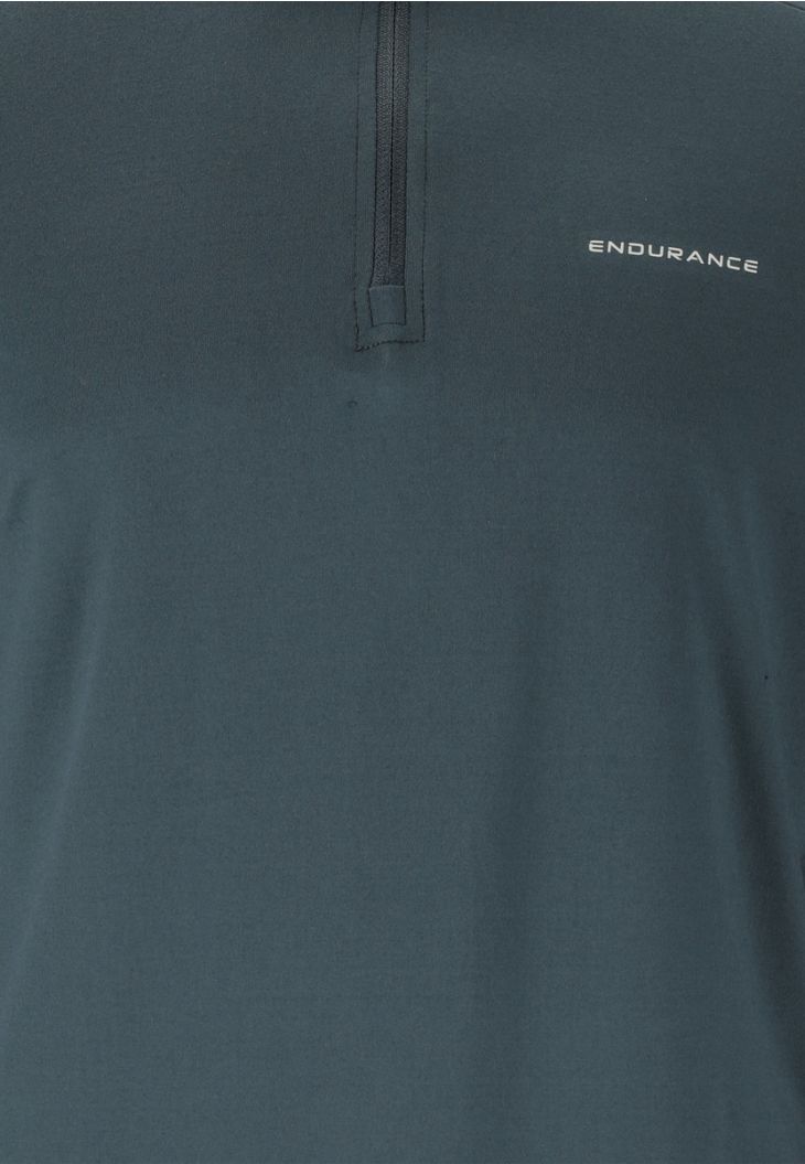 Midlayeren "Armin" til mænd fra Endurance gør hver aktive dag til en succesoplevelse. Fremstillet af 4-vejs stretch med 90 % polyester og 10 % elastan, tilbyder den optimal komfort og bevægelsesfrihed. Overdelen har normal pasform. Med sin åndbarhed og Quick-Dry-funktion holder den dig tør og frisk under træning, løb eller udendørsaktiviteter. En smart halv lynlås med lille krave fuldender looket perfekt. "Armin" er perfekt som del af et lag-på-lag-look!
