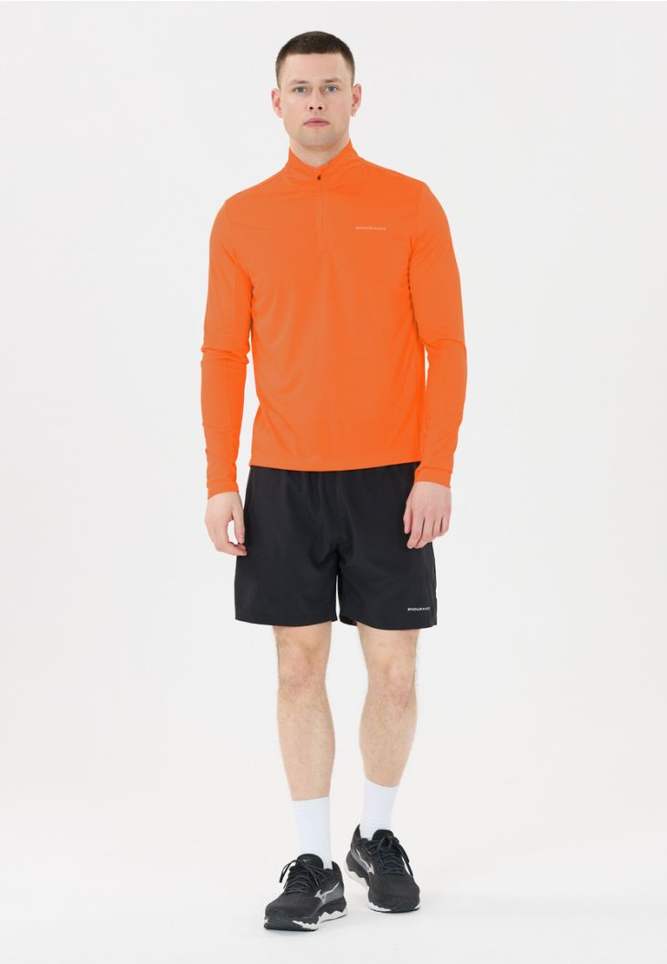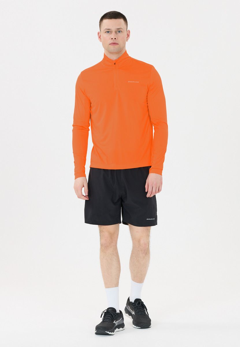 "Omais" fra Endurance er det ideelle mellemlag til aktive mænd, der værdsætter kvalitet og funktionalitet. Med sin 4-vejs stretch og Quick-Dry-teknologi sikrer den optimal bevægelsesfrihed og en behagelig, tør fornemmelse. Den normale pasform og det elastiske materiale garanterer en behagelig pasform, mens de reflekterende detaljer øger synligheden i dårlige lysforhold. Med sit enkle design er mellemlaget både funktionelt og stilfuldt og perfekt til aktive dage.