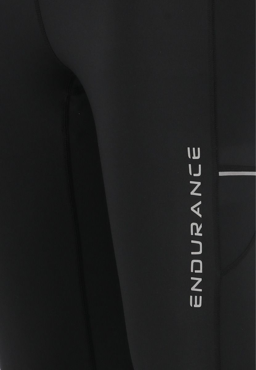 De åndbare funktionstights Energy fra ENDURANCE til kvinder overbeviser med en fantastisk pasform og en ekstra høj linning i hoften, som giver et super hold og pasform. Det hurtigtørrende stretchmateriale af genanvendt polyester og elastan er udstyret med den innovative QUICK DRY-teknologi. Det transporterer fugt fra indersiden til ydersiden og fordamper dermed hurtigere. Det genanvendte polyester er fremstillet af gamle PET-flasker ved hjælp af en miljøvenlig proces. De reflekterende elementer giver bedre synlighed i mørke. Sidelommerne har plads til din mobiltelefon og mere. Forresten: Efter en svedig træning kan du nemt vaske sportsbukserne i vaskemaskinen ved 40 grader.