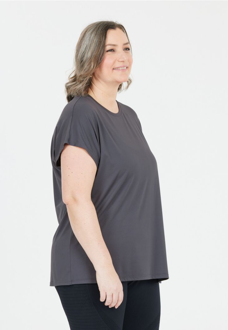 Den bæredygtigt fremstillede funktionsshirt "Jenirei" til kvinder fra Q Sportswear fra Danmark passer til tidens ånd. Den kortærmede shirt er hovedsageligt fremstillet af genanvendt polyester. Det åndbare og superbløde funktionsmateriale tørrer særligt hurtigt takket være QUICK DRY-teknologien. Det superbløde stof giver fantastisk komfort ved sport som løb og fitness.