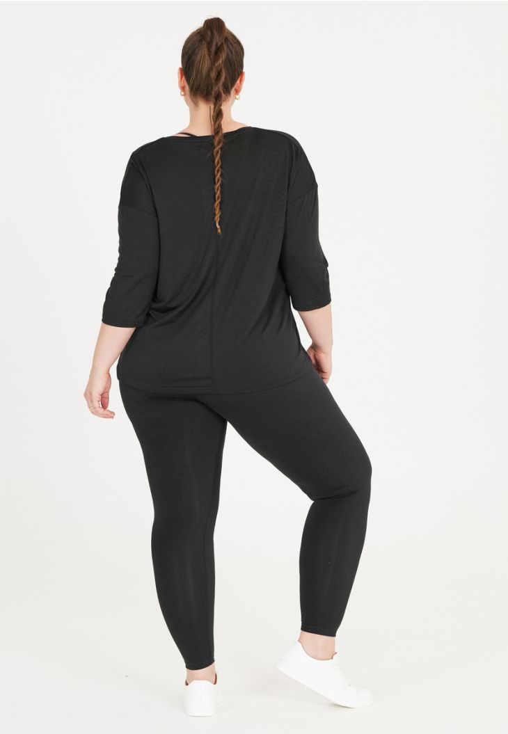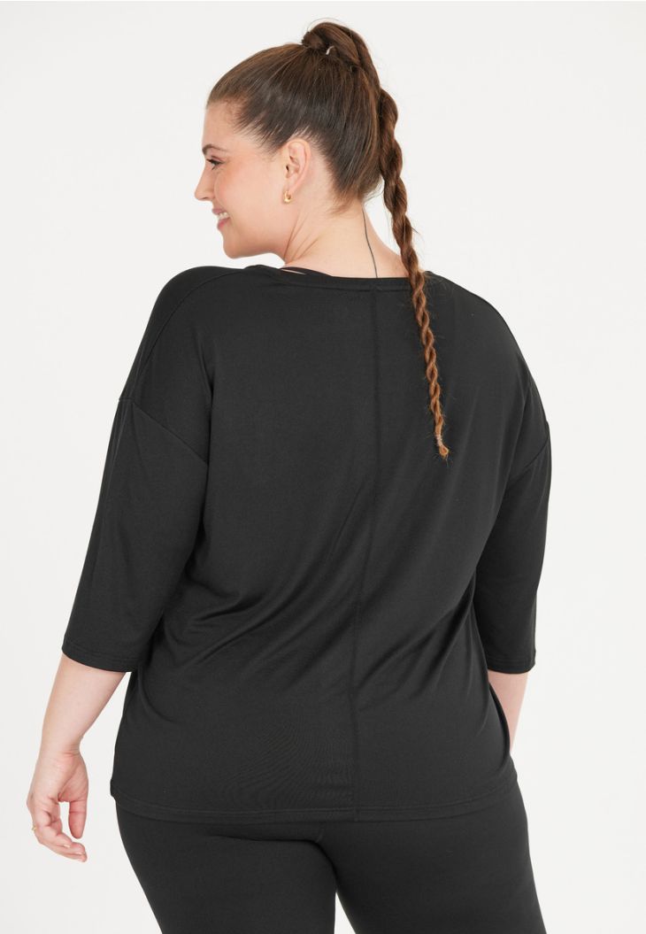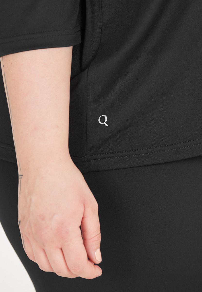 Afslappet, afslappet og behagelig – det er "Jenirei"-trøjen med trekvartærmer fra Q Sportswear. Takket være sin åndbare og hurtigtørrende kvalitet har trøjen en fugtregulerende, antibakteriel og lugthæmmende virkning ved sport og fitness. Den løse pasform og det elastiske materiale giver dig desuden maksimal bevægelsesfrihed! T-shirten er fremstillet af 45 % polyester, 45 % genanvendt polyester og 10 % elastan.