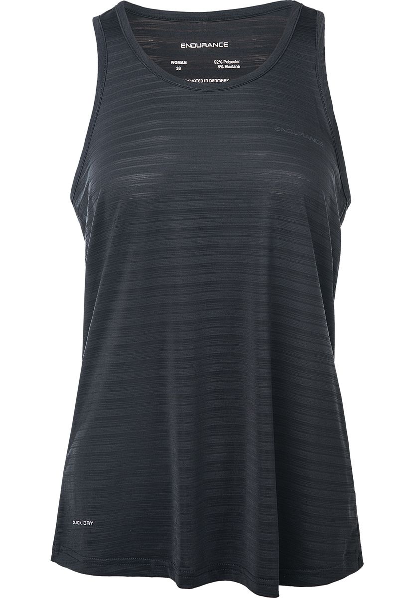 Tynd som en vind! Den superlette og luftige tanktop REGIER til kvinder fra ENDURANCE er ideel til svedige træningspas. Den er let gennemsigtig og kan f.eks. kombineres med en smart sports-BH. Desuden scorer den med den innovative QUICK DRY-teknologi, hvor fugt transporteres fra indersiden til ydersiden. Den hurtige fordampning sikrer en tør og behagelig fornemmelse. Tanktopens løse og feminine snit fremhæver den kvindelige figur på en flatterende måde. Også X-profilen er løst og afslappet i snittet og smigrer din ryg. Det lille logo-print på forsiden reflekterer og giver lidt mere sikkerhed i skumringen. Der er også et lille, synligt og reflekterende bånd på nakken. Klare linjer, meget enkel og minimalistisk, men samtidig hip – ENDURANCE-kollektionen kan nemt og hurtigt kombineres til et trendy sportsoutfit!