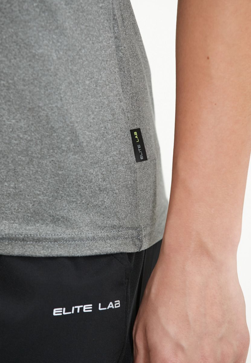 EliteLab Sustainable X1 Elite W S/S Tee er den perfekte løbetrøje til kvinder. Den er designet med fokus på kvalitet og den nyeste teknologiske udvikling. Trøjen er lavet af genanvendt polyester og elastan, hvilket gør den både åndbar og super blød. Den har en normal pasform og medium længde, samt korte ærmer. Med sin melerede mønster og rund hals er den perfekt til afslappede lejligheder. EliteLab er et brand, der er kendt for deres innovative design og bæredygtige produkter.