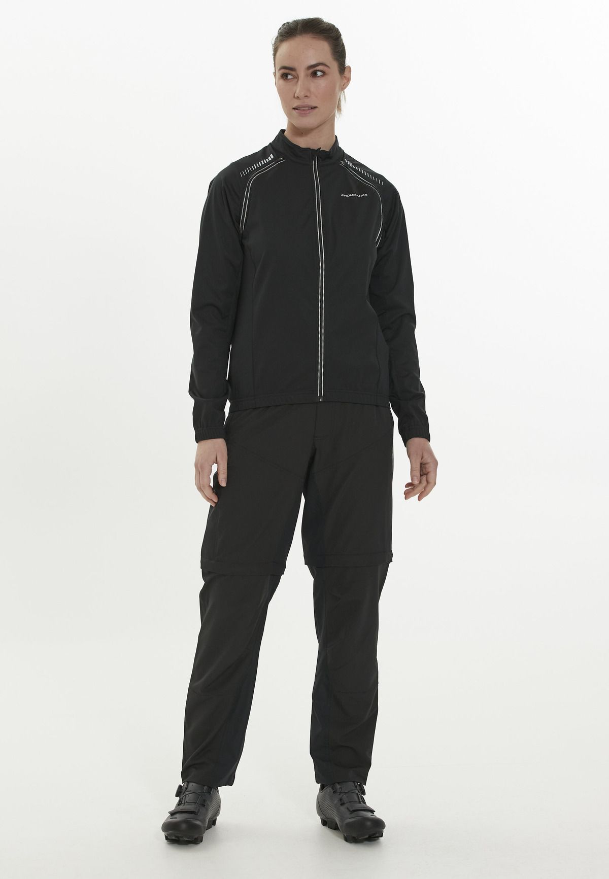 Bliv perfekt udstyret til cykling med 2-i-1 cykeljakken “Wadie” til kvinder fra Endurance! Ærmerne på denne smarte jakke kan nemt fjernes med en lynlås, så den omdannes til en vest på ingen tid. Den er lavet af 100% polyester og er åndbar, vandtæt (5.000 mm vandsøjle) og vindtæt, så du altid får en behagelig og tør fornemmelse. Lynlåsen i fuld længde er udstyret med indvendig vindbeskyttelse og hagebeskytter. For at sikre, at jakken altid sidder optimalt, er den nederste kant og ærmeenderne elastiske. På bagsiden finder du tre åbne lommer og en lynlåslomme til vigtige ting. Reflekterende elementer sikrer, at du forbliver synlig for andre selv i dårligt lys. En rigtig allrounder til cykling og mountainbike i al slags vejr!
