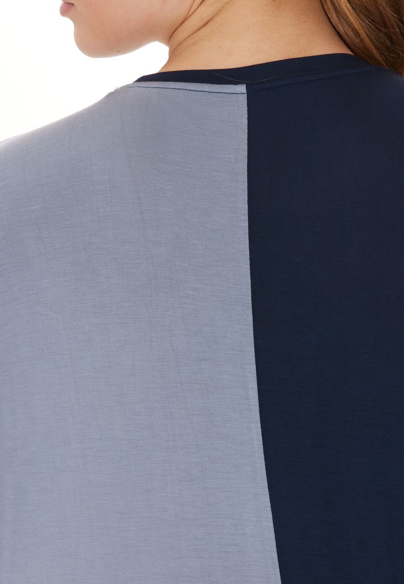 Carla W Colour Block Tee es una excelente camiseta de ENDURANCE. La camiseta es adecuada para mujeres y es un producto ideal para el fitness o los deportes de interior. Tiene un moderno diseño de bloques de color. El material es modal. La camiseta se fabrica de forma sostenible y es transpirable.