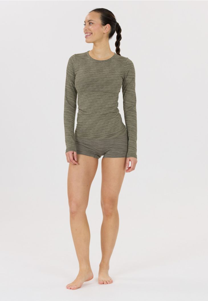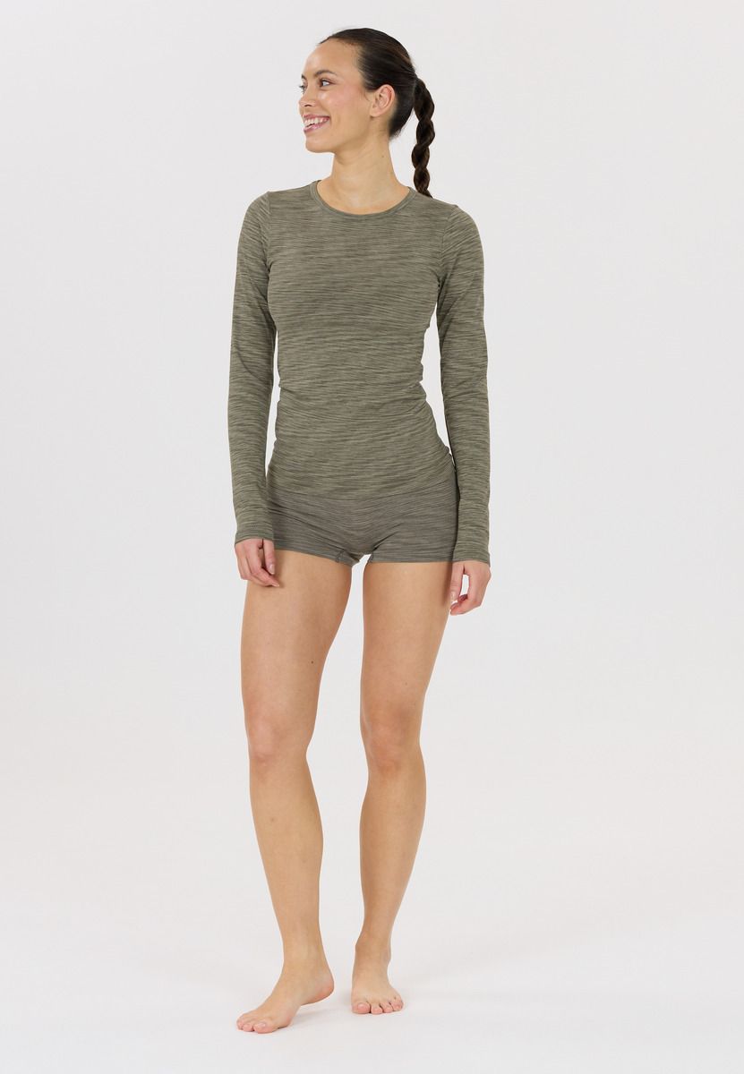Crina es una camiseta de manga larga de alta calidad de ENDURANCE. Es una opción ideal para el fitness, los deportes de interior o para correr y caminar, y ha sido diseñada para la mujer. Su aspecto se caracteriza por un elegante estampado melange. La camiseta no tiene costuras, es transpirable y regula la humedad.