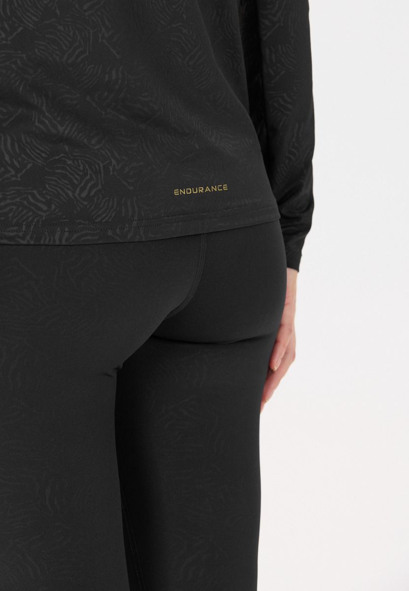 La capa intermedia para mujer "Peipah" de Endurance es el complemento ideal para actividades deportivas y días activos al aire libre. La mezcla transpirable de poliéster y elastano con elasticidad en 4 direcciones garantiza una libertad de movimiento óptima y una sensación de comodidad. Gracias a las costuras planas flatlock, "Peipah" es especialmente cómoda de llevar, incluso durante niveles altos de actividad. La media cremallera con cuello alto y mentonera integrada ofrece protección adicional contra el viento y el mal tiempo. El sutil estampado integral añade un toque de estilo a su diseño funcional. Por todo ello, "Peipah" es la elección perfecta para las mujeres que aprecian la comodidad, la funcionalidad y un aspecto moderno.