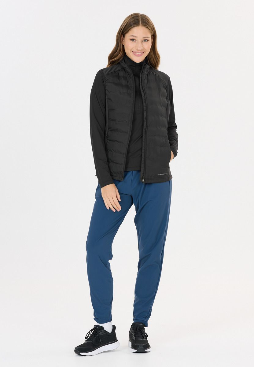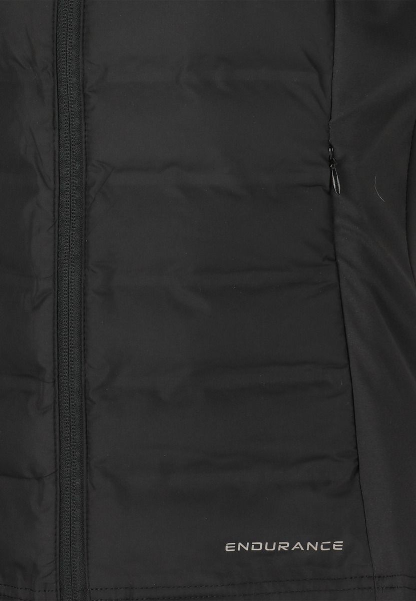 El chaleco funcional para mujer "Reitta+" de la marca danesa Endurance es un chaleco deportivo híbrido con cálidas inserciones acolchadas de fibras sintéticas. Es perfecto para correr y hacer ejercicio al aire libre en días frescos. La membrana cortavientos y el cuello alto proporcionan una gran protección contra el viento frío y las corrientes de aire. Las inserciones elásticas en los laterales te proporcionan la mejor libertad de movimientos. Los elementos reflectantes garantizan siempre una buena visibilidad en la oscuridad. Un diseño deportivo procedente de Escandinavia, una duradera cremallera completa de marca YKK en la parte delantera, bolsillos laterales con cremallera y una protección para la barbilla completan el conjunto. Consejo: el plumón de fibra sintética se puede lavar fácilmente a máquina a 40 grados en cualquier momento.