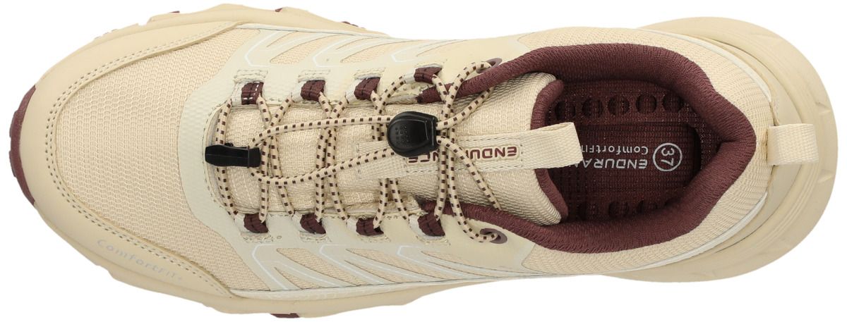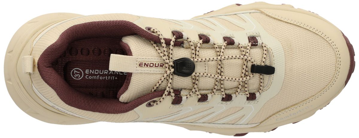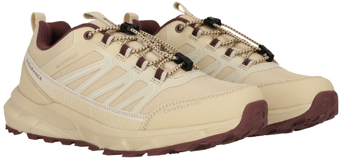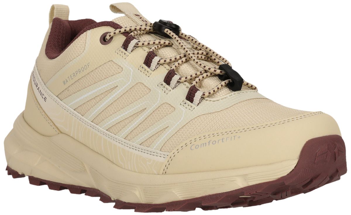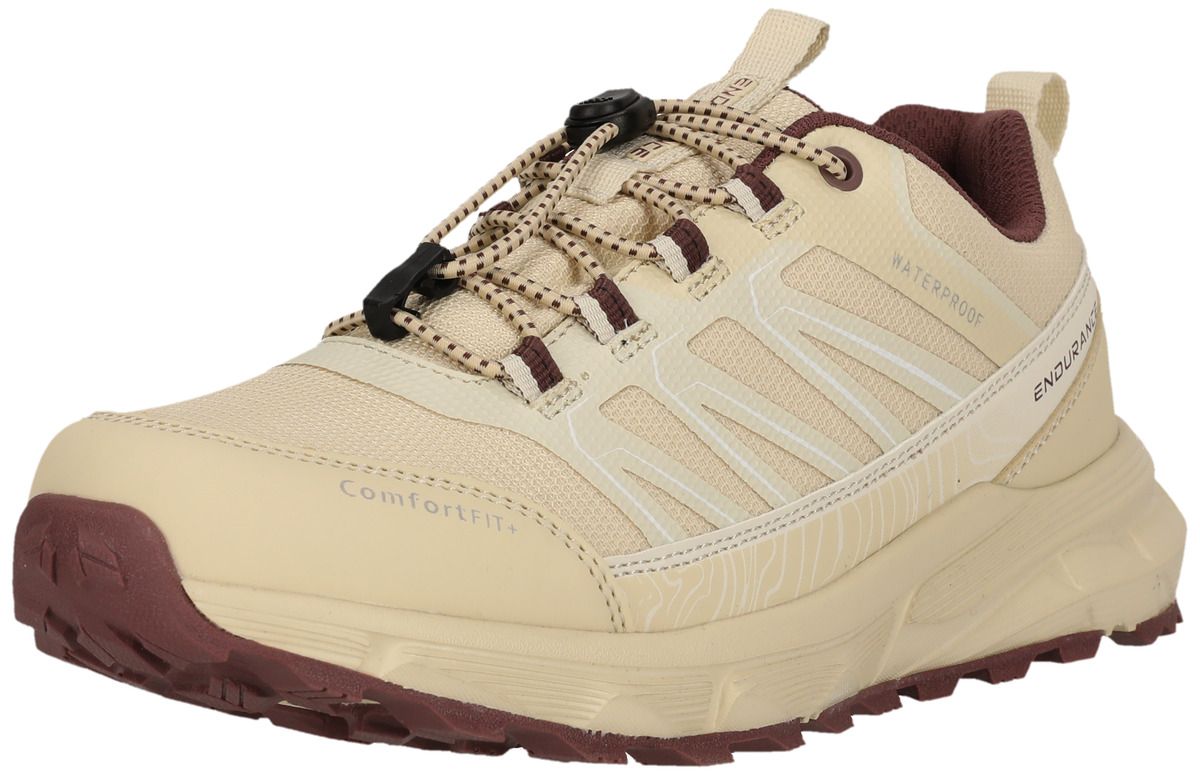 Le "Ferill" d'Endurance est le compagnon idéal des femmes actives qui veulent tout donner à l'extérieur, que ce soit en trail running, sur les chemins de randonnée ou lors d'aventures urbaines. Avec sa construction imperméable et respirante et sa membrane déperlante, cette chaussure te garde au sec et confortable même par temps changeant. La pointe du pied renforcée te protège efficacement des éboulis et des obstacles, tandis que le système de laçage rapide pratique assure un maintien optimal et un ajustement personnalisé - sans aucun nœud ni resserrage. La "Ferill" combine un design sportif avec une fonctionnalité robuste - idéale pour tous ceux qui sont à l'extérieur.