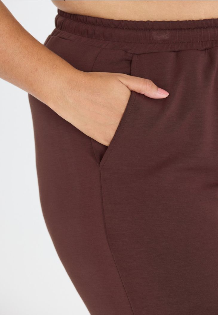 Få ut det bästa av dig själv och dina träningspass eller koppla av bekvämt i soffan - valet är ditt med "Tiamo" plus size-sweatpants för kvinnor! De är tillverkade av en supermjuk polyester-modal-elastan-blandning och är därför sköna mot huden. Det stretchiga midjebandet med dragsko garanterar en bekväm passform. Också praktiskt: de två öppna sidofickorna!